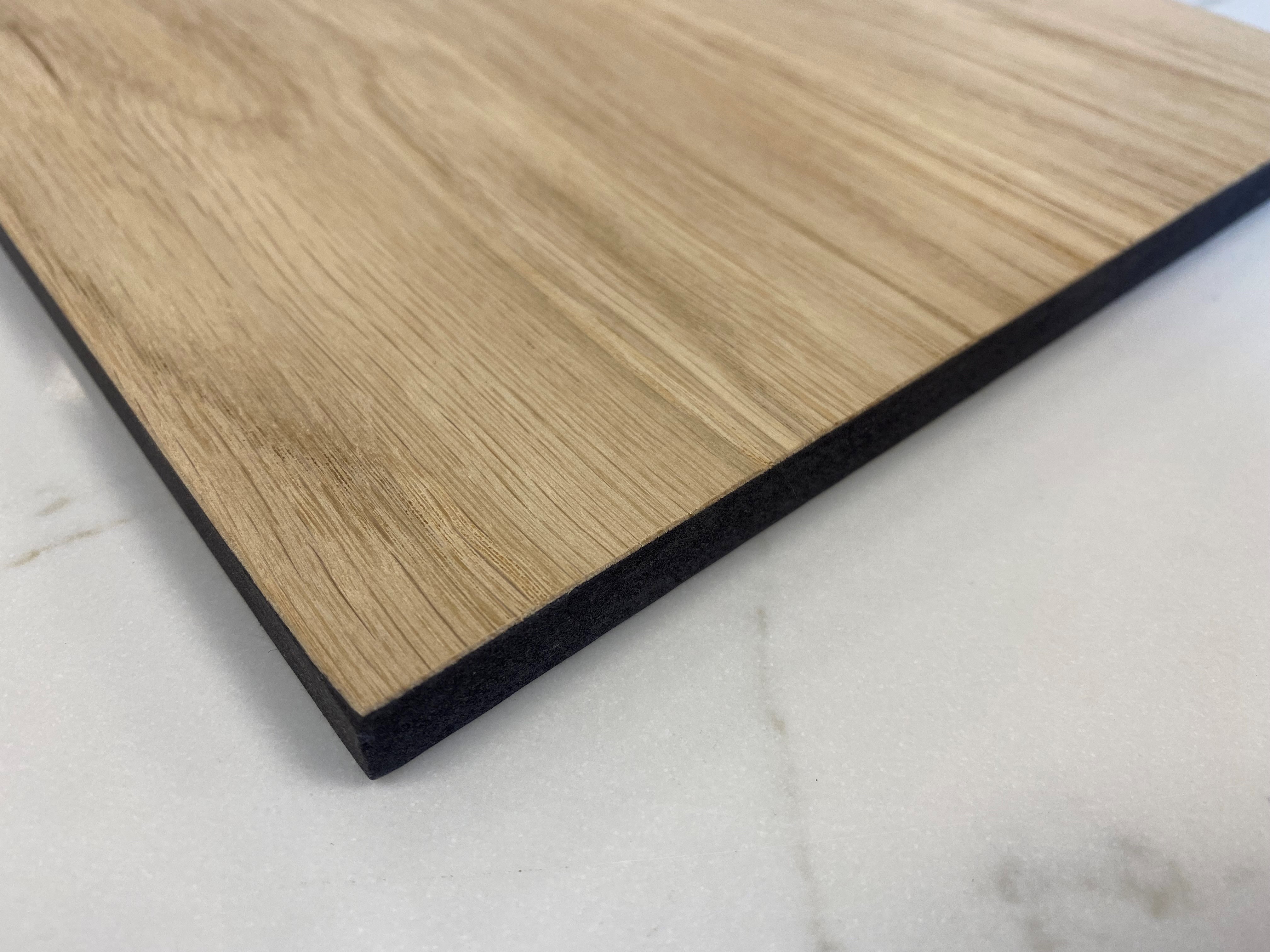 Real wood veneer on a black MDF board. Note: As a natural product the grain pattern, colour and character may vary within one sheet or from one sheet to the next. Give our team a call today to learn more.